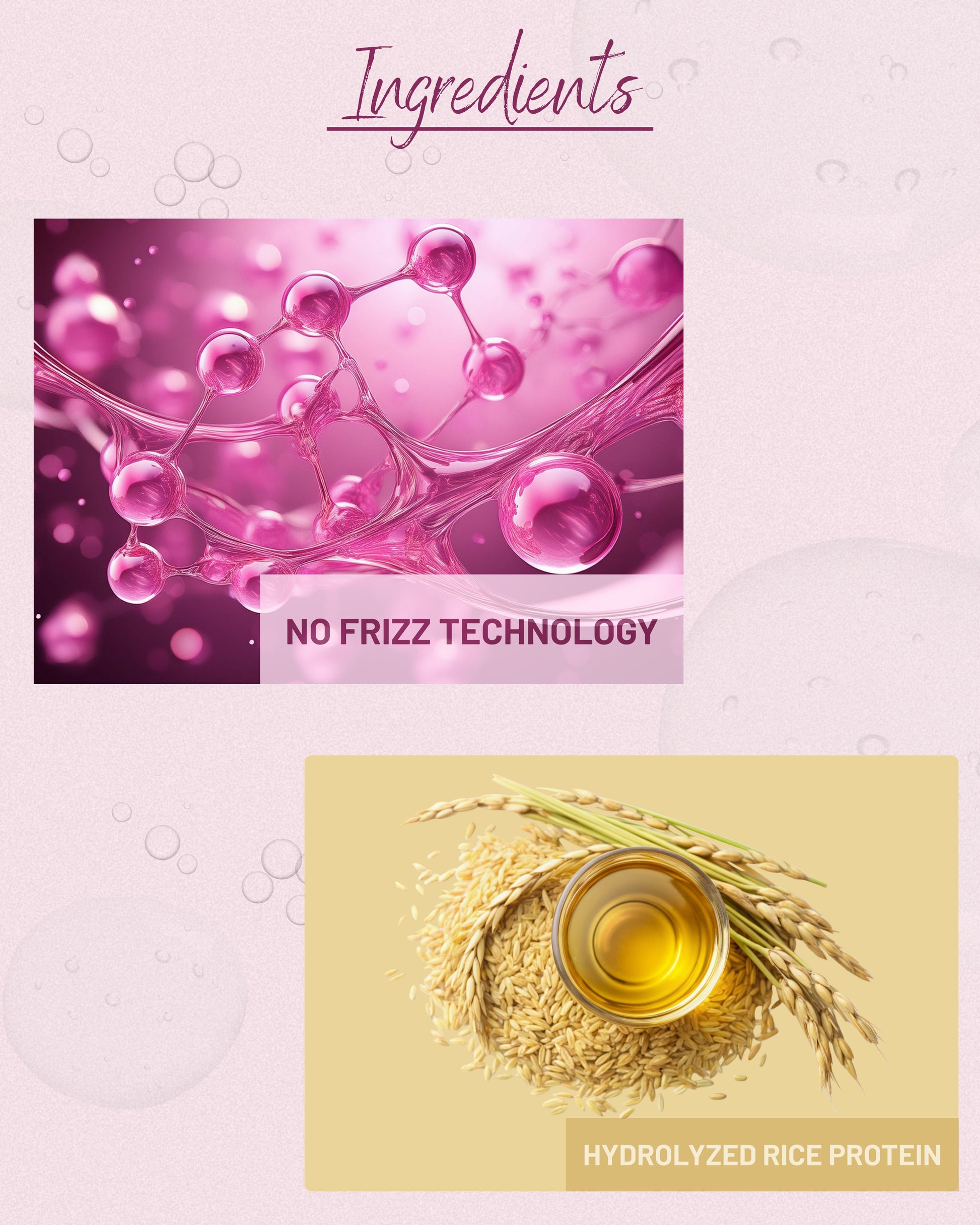 NO FRIZZ TECHNOLOGY - nano-molecular technology infuses intense hydration and nourishment in all 3 layers of the hair, eliminating any existing frizz and dryness.