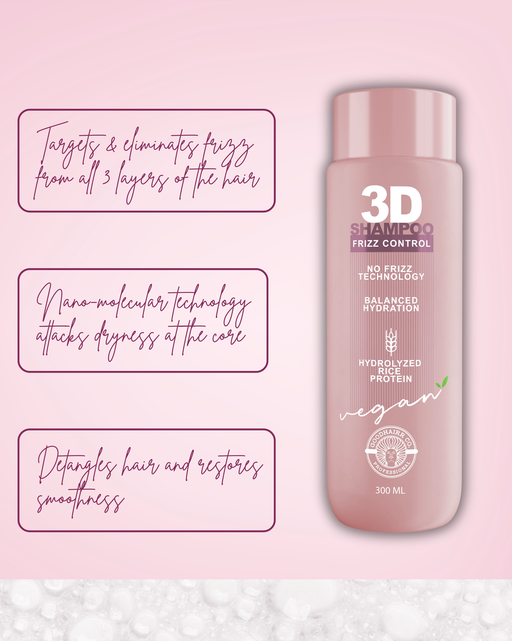 3D FRIZZ CONTROL Shampoo is a powerful formulation to target and attack frizz & dehydration at the core and ensure healthy, vibrant and lustrous hair.