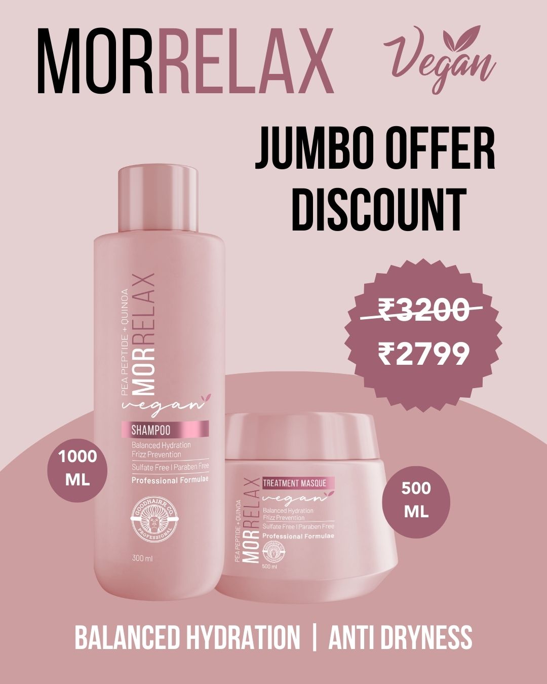 - Hydrolyzed Quinoa & Pea Seed Extract – Deeply penetrates hair to lock in moisture and prevent frizz.
